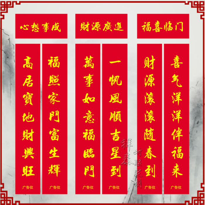 公司主要產品:廣告春聯、定做春聯、定制春聯、禮品春聯、高檔廣告春聯制作.促銷廣告春聯等,我們的服務宗旨:信譽比承諾好、質量比價格高。我公司是菏澤專業的春聯印刷廠和對聯印刷廠。是專業生產和設計對聯,年畫春聯印刷廠、春聯印刷廠、對聯印刷廠、春聯印刷廠、定做春聯廠家、春聯印刷廠家。