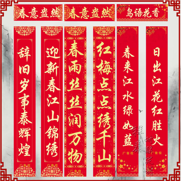 公司主要產(chǎn)品:廣告春聯(lián)、定做春聯(lián)、定制春聯(lián)、禮品春聯(lián)、高檔廣告春聯(lián)制作.促銷廣告春聯(lián)等,我們的服務(wù)宗旨:信譽(yù)比承諾好、質(zhì)量比價格高。我公司是菏澤專業(yè)的春聯(lián)印刷廠和對聯(lián)印刷廠。是專業(yè)生產(chǎn)和設(shè)計對聯(lián),年畫春聯(lián)印刷廠、春聯(lián)印刷廠、對聯(lián)印刷廠、春聯(lián)印刷廠、定做春聯(lián)廠家、春聯(lián)印刷廠家。春聯(lián)印刷廠,對聯(lián)印刷廠,對聯(lián)廠家,春聯(lián)廠家,對聯(lián)廠,春聯(lián)廠,